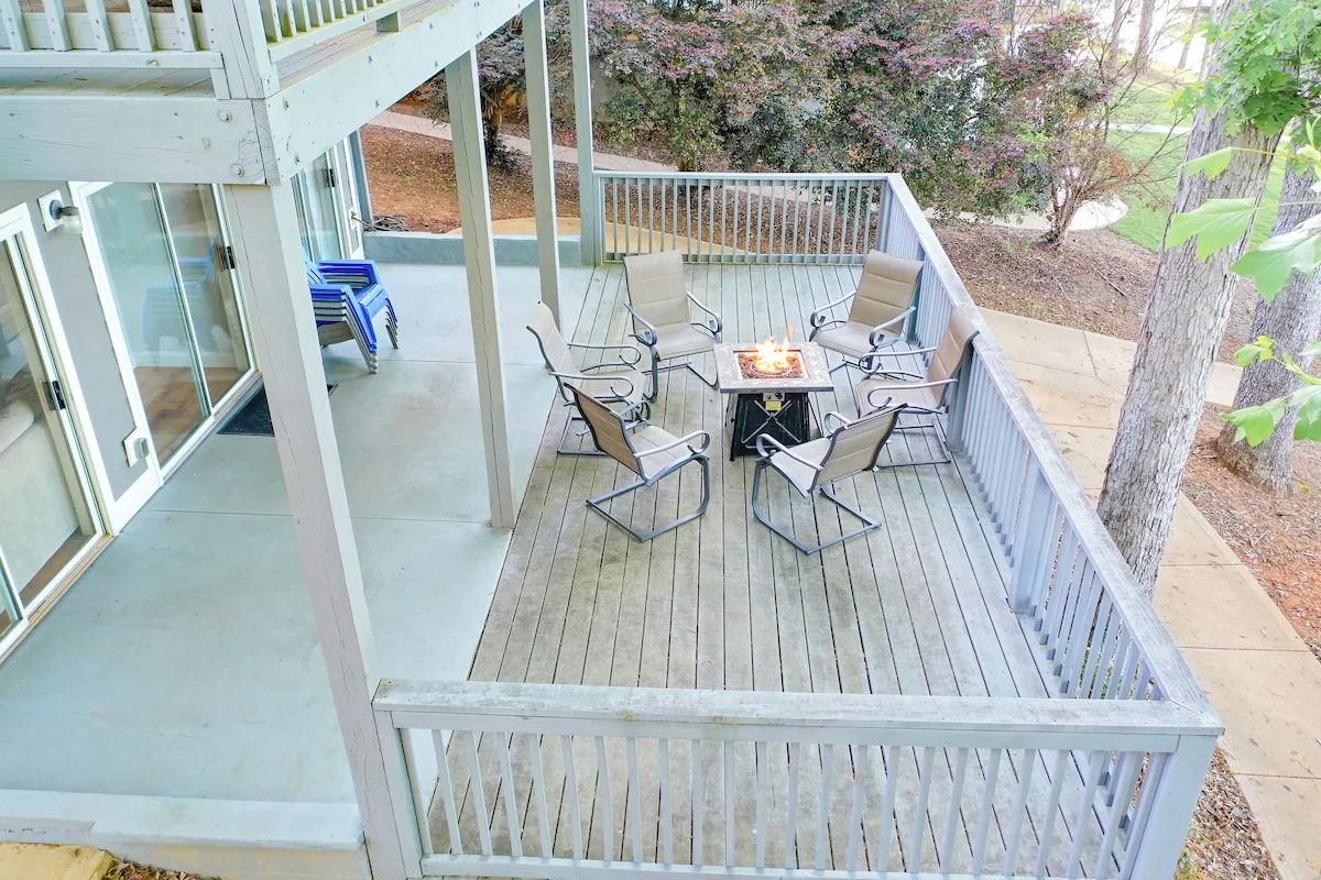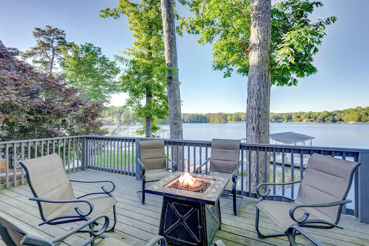 Just outside the lower level is a wonderful outdoor living area with a gas fire pit and comfortable chairs, perfect for enjoying an evening drink with friends or enjoying Lake Keowee less than 30 feet away! We recently added a wooden deck extension to provide additional room and bring the home even closer to the lake.