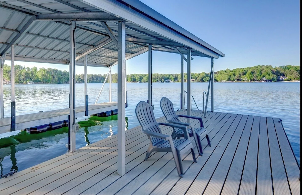 The oversized dock has 4 stackable Adirondack chairs and a dock box for storage, and an upgraded staircase ladder which makes entering and exiting the lake very easy for all! The view from the dock is amazing, looking over a half mile of open water with views of several undeveloped islands.